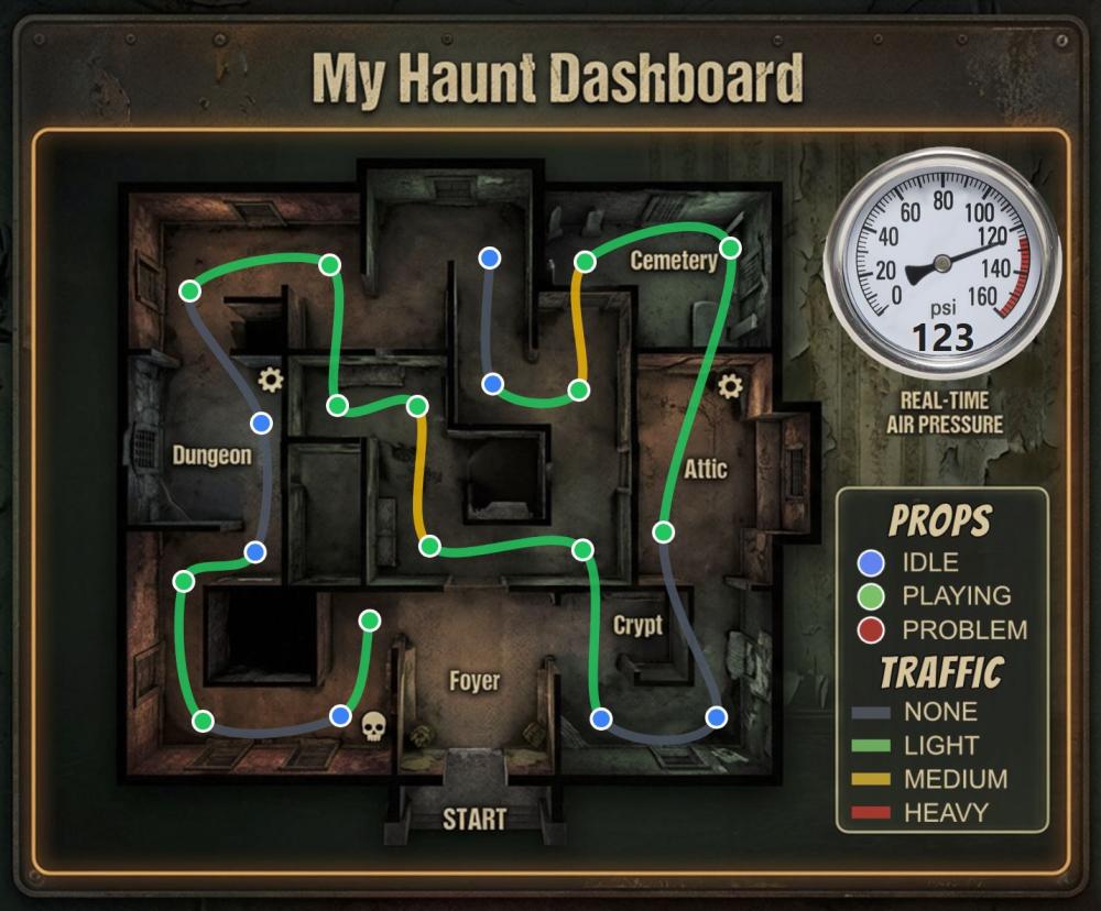Visualizing the Flow: Watch the "pulse" of your haunt in real-time. On any laptop or tablet, you’ll see icons light up in sequence as patrons move through the halls. If a section of your map stays "dark" for too long, you know there's a gap in the line; if an entire wing stays "lit," you know a group has stopped to take a selfie and is backing up your show.